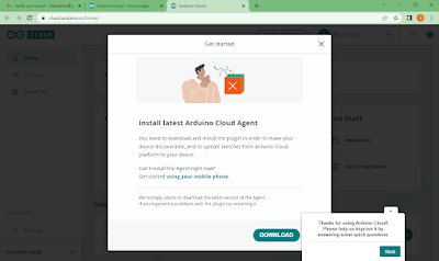 22. Create Agent ini sama dengan Arduino Cloud Agent. Apabila di langkah sebelumnya rekan-rekan sudah mendownload Arduino Cloud Agent, maka tidak perlu lagi menginstal Create Agent.